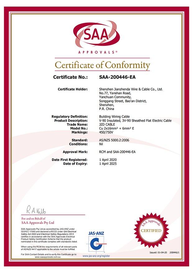深圳建圳達電線電纜有限公司,成立于2000年,是一家電線電纜制造商,我們通過了世界各地不同市場的多數(shù)認證,如:CCC、RoHS、CB、SAA、TUV、VDE、PSE、BPS、UL、CSA。我們根據(jù)定制產(chǎn)品不斷更新新的認證。經(jīng)過數(shù)十年的發(fā)展,我們與來自世界各地的客戶建立了長期的合作關系。我們曾經(jīng)是菲律賓機場,,柬埔寨的電力站,美國的醫(yī)院,工廠,埃塞俄比亞的水電站項目。我們是一家值得信賴的電線供應商。